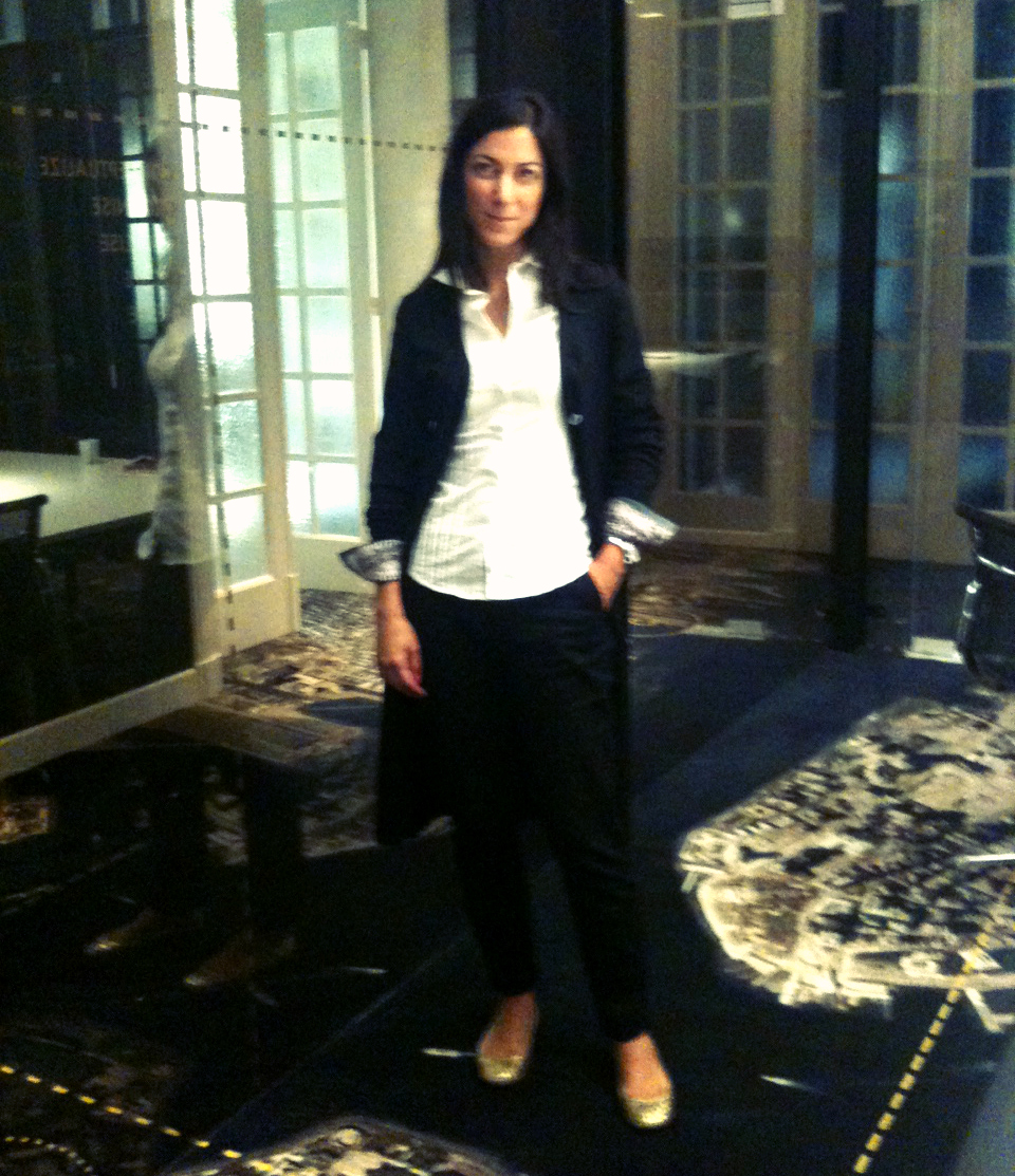 Power Suit Softener [Πουκάμισο Paul Smith Black label, ζακέτα In Wear (μην προσπαθήσεις να τη βρεις, η Φοίβη πιστεύει πως η μάρκα είναι τόσο πανάρχαια που μπορεί να μην υπάρχει καν), παντελόνι Zara, μπαλαρίνες Jimmy Choo]