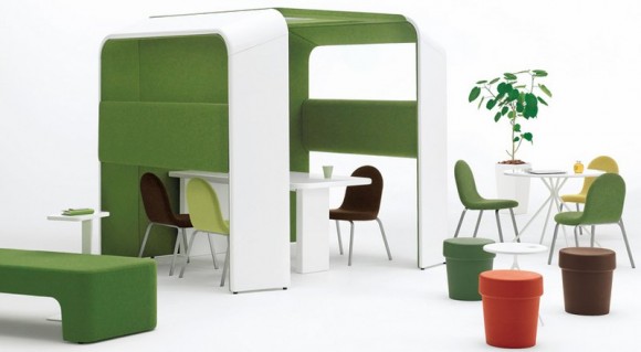 Όποτε ψάχνω στο ίντερνετ για γραφεία, γιατί το κάνω καμιά φορά, είτε άνοιξη είναι, είτε καύσωνα έχει, είτε ζεσταίνω τα ποδαράκια μου με καλτσούλες και αερόθερμο να τα φυσάει κάθετα, έχω στο αφτί αυτό το κομμάτι. Αν έχεις δουλέψει σε θαλαμίσκους θα ξέρεις ότι μπορούν να γίνουν πολύ μίζεροι, και ότι δεν σου λείπουν καθόλου όταν μαζεύεις την κούπα και τη φωτογραφία του σκύλου σου από το γραφείο με προορισμό την κούτα κατά την απόλυση (που να ξέρεις, μπορεί και να ήταν επειδή είσαι πολλές ώρες στο Facebook). Ο Shin Azumi φροντίζει να σου δημιουργήσει τη, μίνιμουμ, εντάξει, νοσταλγία για το γραφείο, με αυτά τα ωραιότατα cubicles που ονομάζει Cacomi (σημαίνει “το να εμπεριέχεται κάτι κάπου” στα ιαπωνικά), με μια σειρά επίπλων που βασίζονται στην έλλειψη γωνίας και έχουν κατασκευαστεί με γνώμονα τα διαφορετικά ύψη στα οποία καμιά φορά είσαι υποχρεωμένος να δουλεύεις στον υπολογιστή (κλασικό ύψος γραφείου, χαμηλό τραπέζι στα meetings, πάγκος). Φυσικά δεν λείπουν τα design παραπετάσματα που εγγυώνται τη συγκέντρωσή σου (… σε οτιδήποτε NSFW) και εξασφαλίζουν την ιδιωτικότητα – και ότι δεν κάνεις chit chat με τον συνάδελφο (… λες και θα ‘θελες).