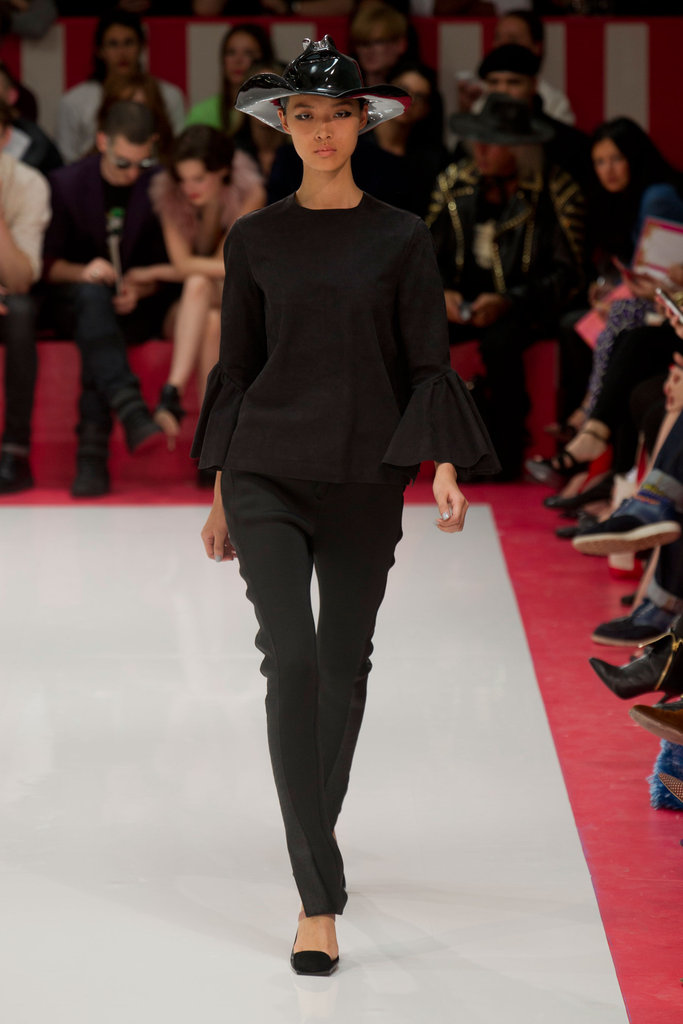 O Marios Schwab σε πρόσκληση για ένα gothic tea part, με πολλή πιέτα, πολύ κρόσι, πολύ μαύρο (έλα!) πολύ μπορντό, διαφάνεια, δαντέλα – μπορεί να έλεγες ότι είναι too much αν δεν ήταν τόσο καλά συντονισμένα και αν δεν σου άρεσε τόσο αυτό.