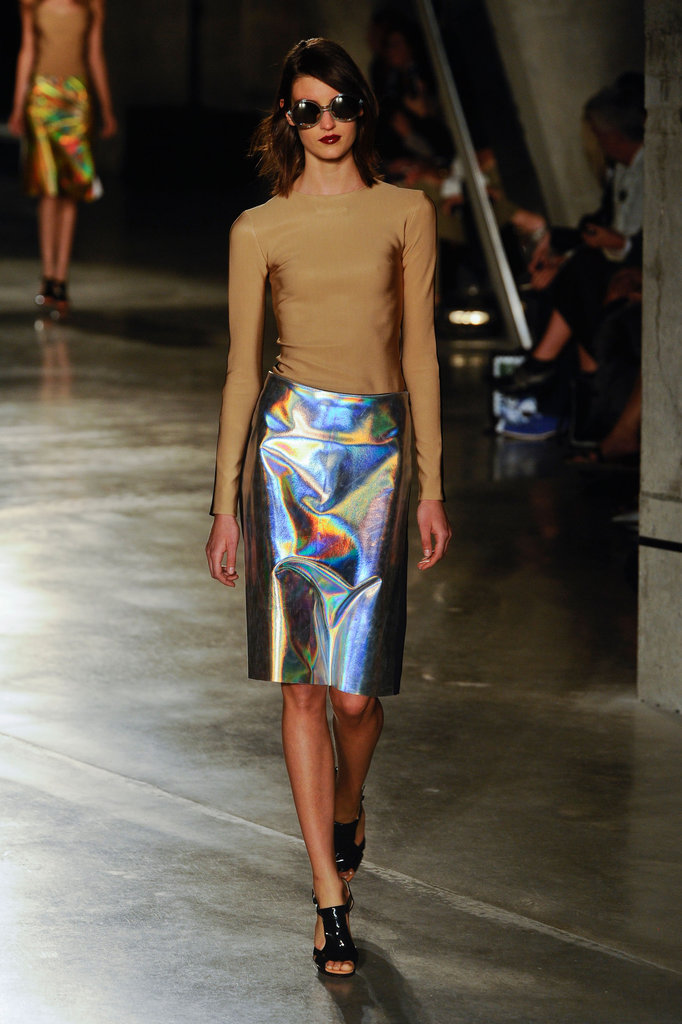 Παγέτα και πλαστικοποιημένη ιριδίζουσα ντίσκο, τίποτα καλύτερο δεν μου έρχεται στο μυαλό, εκτός, έτσι πρόχειρα, από τον Robbie Williams πατέρα. Αυτά τα ρούχα, Jonathan Saunders μου, έπρεπε να είχαν προλάβει την Debbie Harry τραγουδάει Heart Of Glass. Κρίμα και άδικο, τώρα τους έχω μείνει μούσα μόνο εγώ (Δευτέρα, δύσκολη μέρα).