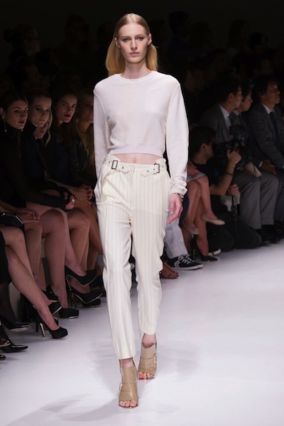 Cropped pants: μεγάλη τάση ετοιμάζεται να κινηθεί επεκτατικά ξεκινώντας από το Μιλάνο, με βλέψεις ευρύτερες. Ανέκαθεν από τις φίρμες με τις οποίες είμαι θα έλεγα συναισθηματικά δεμένη λόγω Sotris – το ξέρατε ότι τις καλές εποχές υπήρχε Sotris στη Φωκίωνος Νέγρη; – τα Costume National κάνουν τα παντελόνια ψαράδικα και τις ασυμμετρίες στις μπλούζες γεωμετρικές, και όχι κυματιστές, σαν ψαλιδίσματαπάνω σε περιγράμματα που έχουν γίνει με χάρακα. Το λαμέ ντίσκο παντελονάκι, νότα που έκανε την έκπληξη στον χαμηλότονο σχεδιασμό της συλλογής. Και πρωί το φοράς.