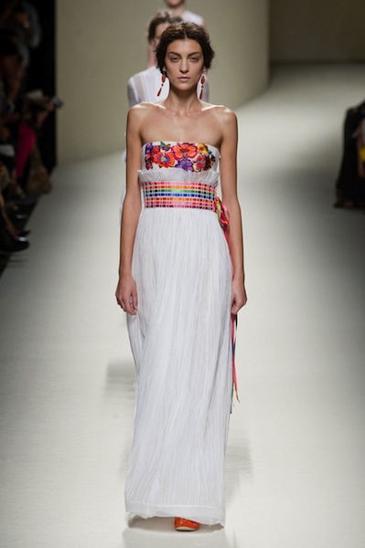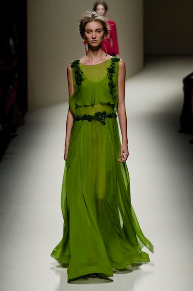 Το ίδιο εκθαμβωτικό πράσινο που βλέπεις στο τελευταίο φόρεμα Alberta Ferreti το βρήκα και στη συλλογή Gianfranco Ferré, π ό σ ο ωραίο είναι; Πολύ ανοιξιάτικη, ανέβασε στις πασαρέλες νύμφες και άνθη, αλλά χωρίς να κλίνει προς υπερβολές σε βάρος της κομψότητας. Η γυναίκα που φοράει Ferretti είναι ποιοτικιά, μη μου άπτου και σχεδόν στερεοτυπικά ανοιξιάτικη.